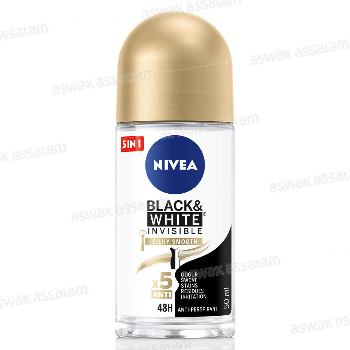 DEODORANT BILLE POUR FEMME 5 EN 1 BLACK AND WHITE INVISIBLE SILKY SMOOTH 50ML NIVEA