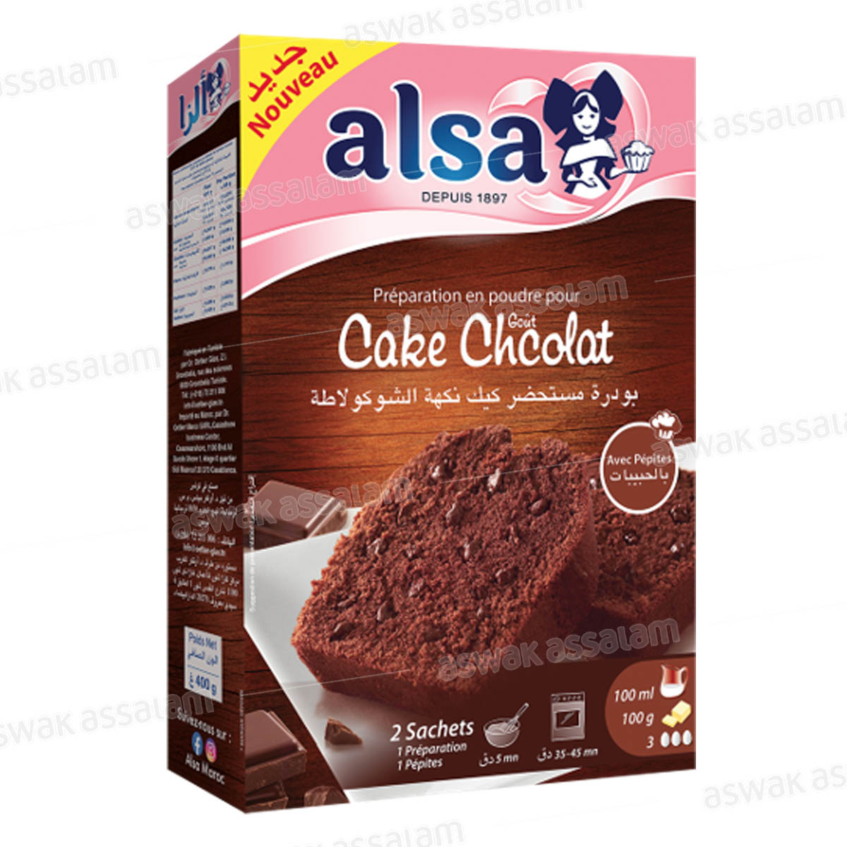 PREPARATION EN POUDRE POUR CAKE CHOCOLAT AVEC PEPITES 400G ALSA