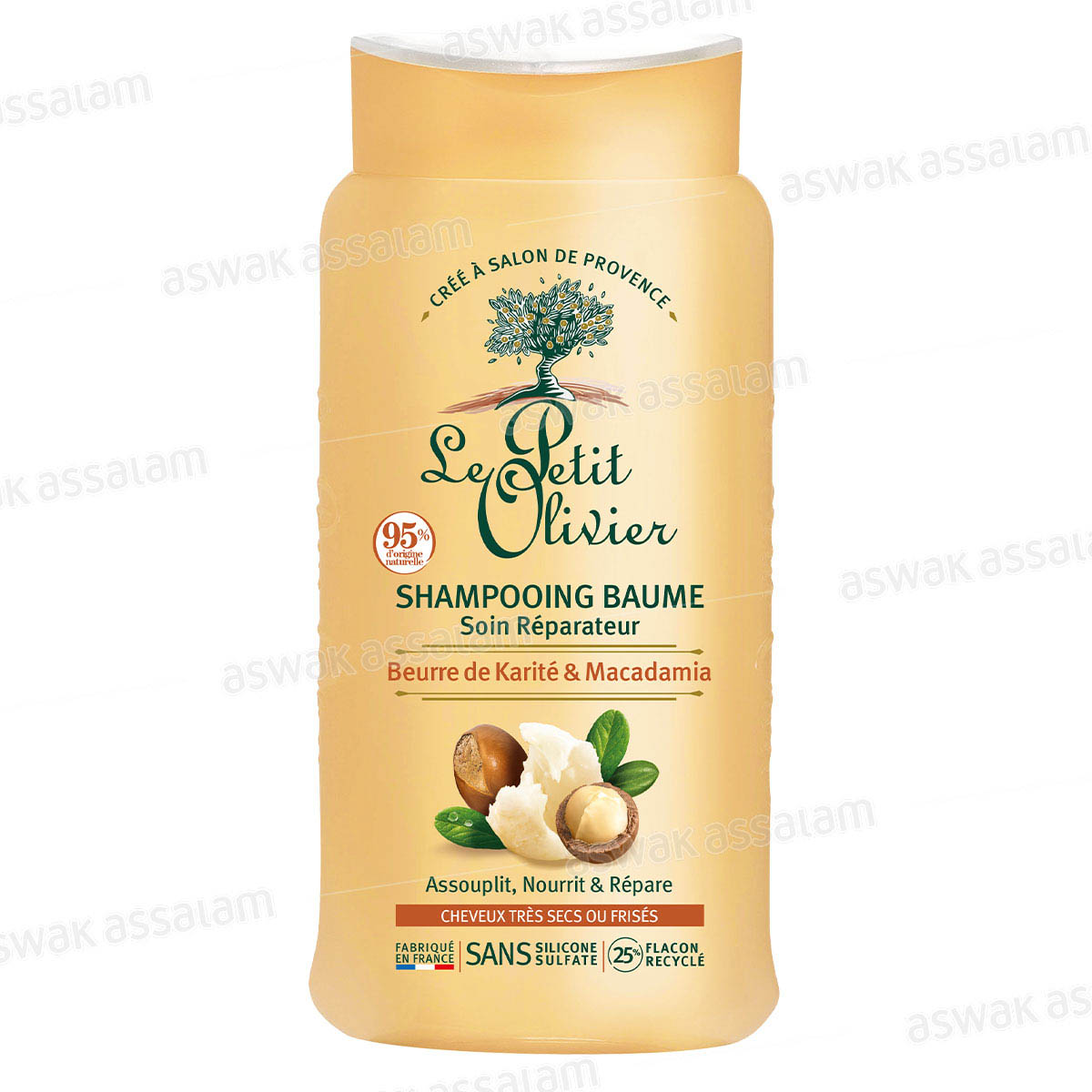 SHAMPOOING BAUME BEURRE DE KARITE ET MACADAMIA CHEVEUX TRES SECS OU FRISES 250ML LE PETIT OLIVIER