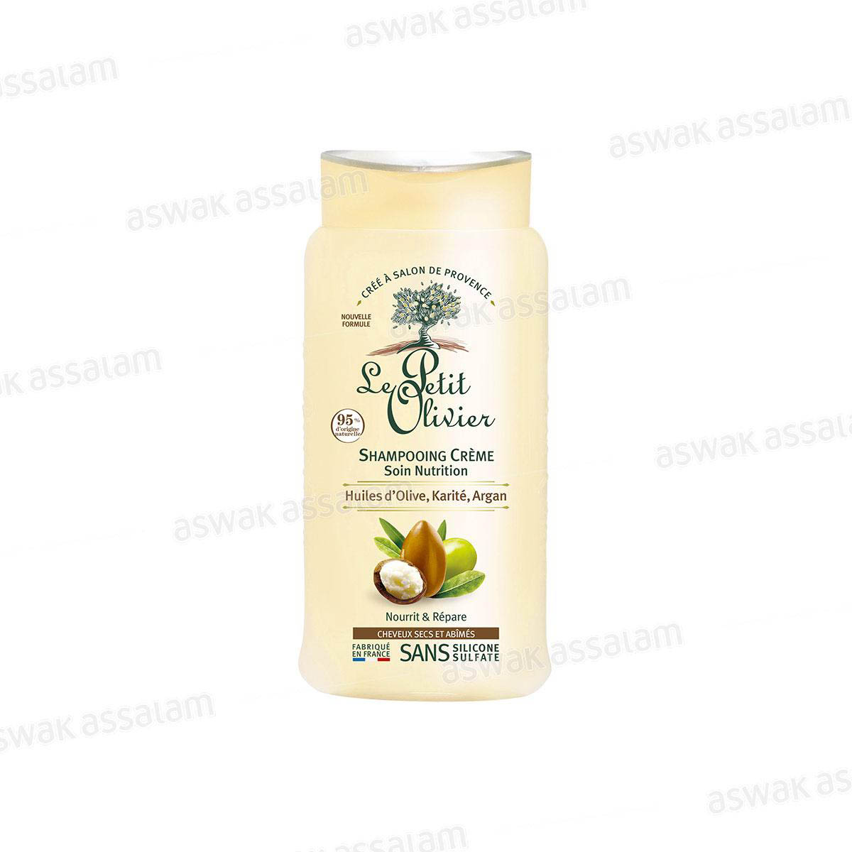 SHAMPOOING CREME NUTRITION HUILES D’OLIVE, KARITE, ARGAN 250ML LE PETIT OLIVIER