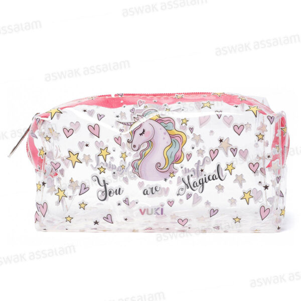 TROUSSE A CRAYONS A FERMETURE ECLAIR TRANSPARENTE MOTIF LICORNE 18,5*9*6CM VUKI